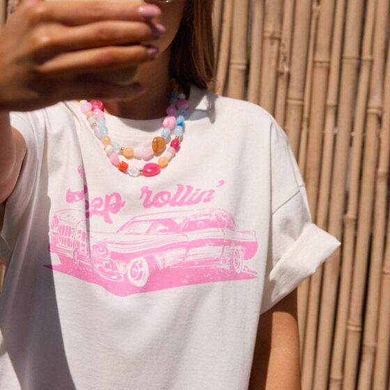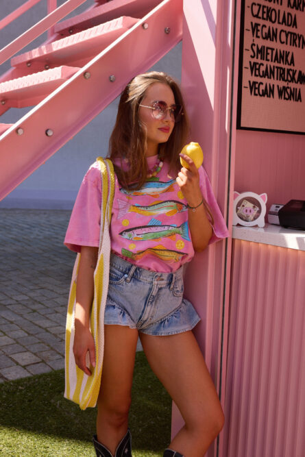 “Bawełna jest miękka, świetnej jakości, a nadruk z różowym autem wygląda oryginalnie, ale bardzo stylowo. Fason oversize, ale układa się idealnie. Czuć jakość i dopracowanie w każdym detalu.”